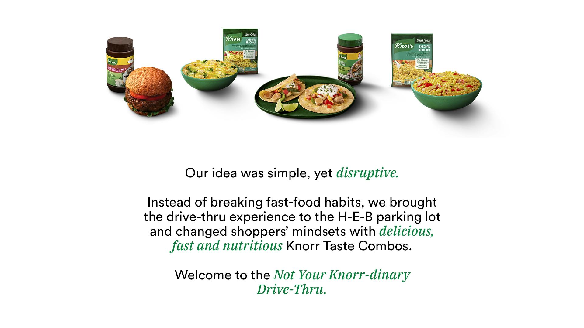 Tasting is believing, so we showed up where fast-food-obsessed San Antonians least expected us: the H-E-B parking lot. We satisfied their every craving with a faux drive-thru that served delicious, easy, fast AND nutritious Knorr Taste Combos.
