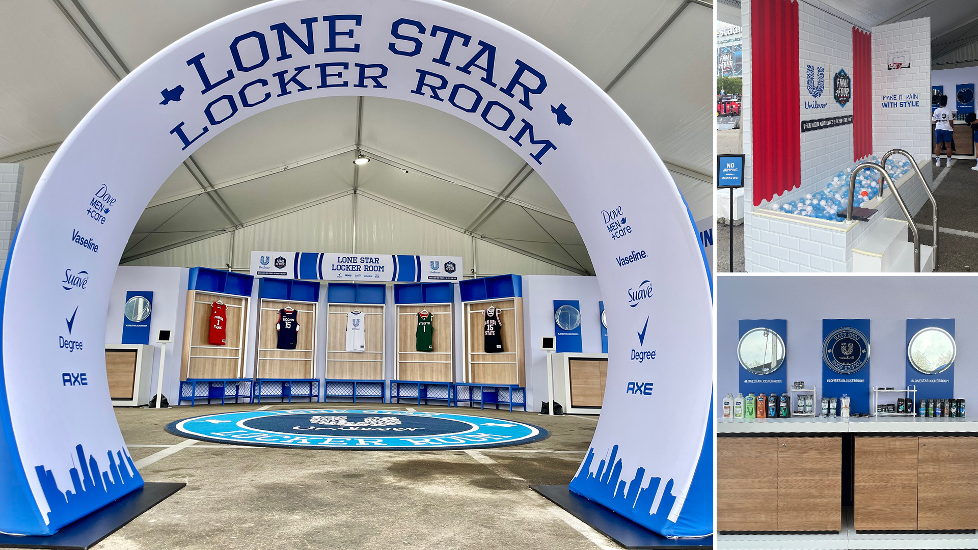 At the NCAA Tip-Off Tailgate, Unilever and H-E-B invited fans to step inside the Lone Star Locker Room, an immersive experience modeled on a college stadium’s locker room. There, attendees were able to get game-day ready with Dove Men+Care, Degree, Suave, and AXE, shoot hoops in a giant bathtub ball pit, take a rookie card photo, and even score sweet gear.