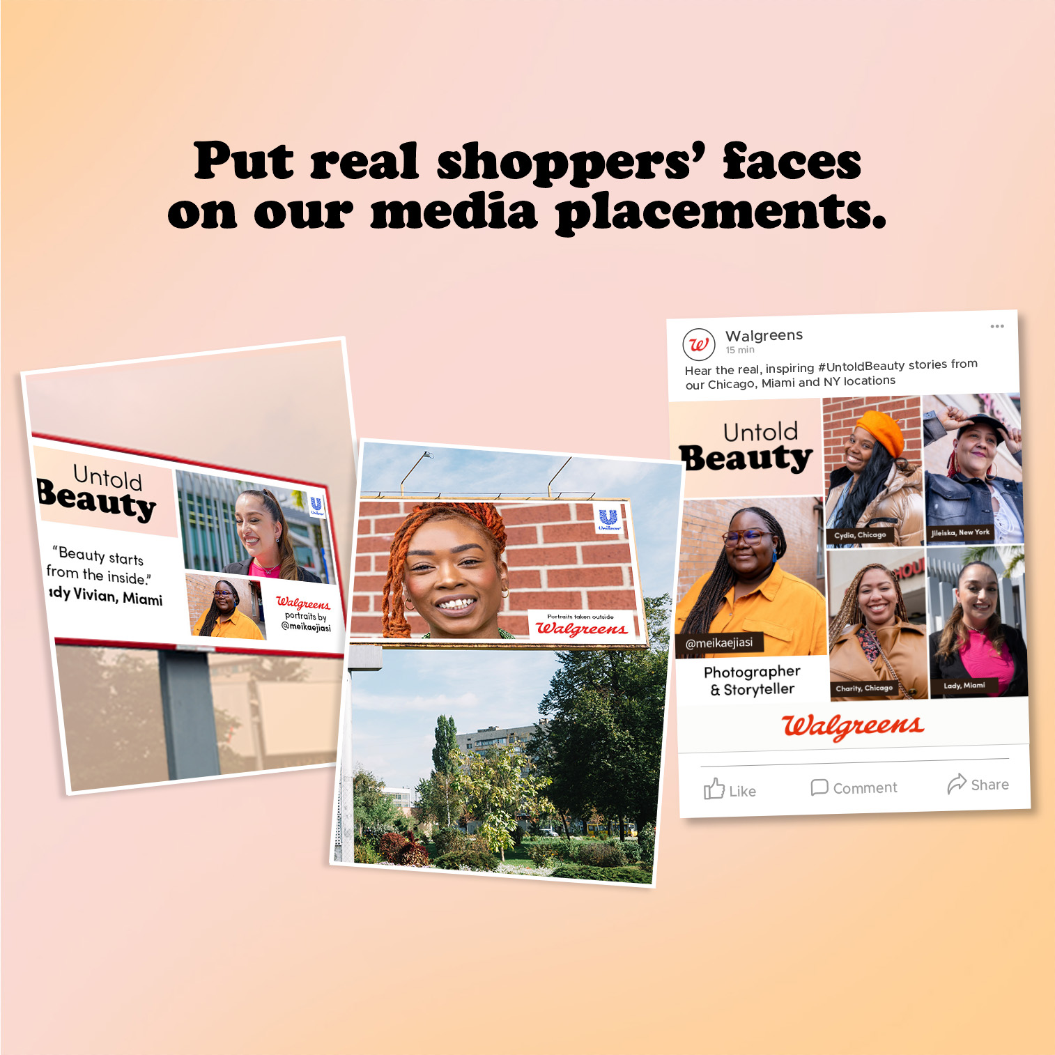 Targeted ads, emails, and first-of-its kind in-store radio spots shined a light on the faces and voices of the Walgreens Untold Beauty community.